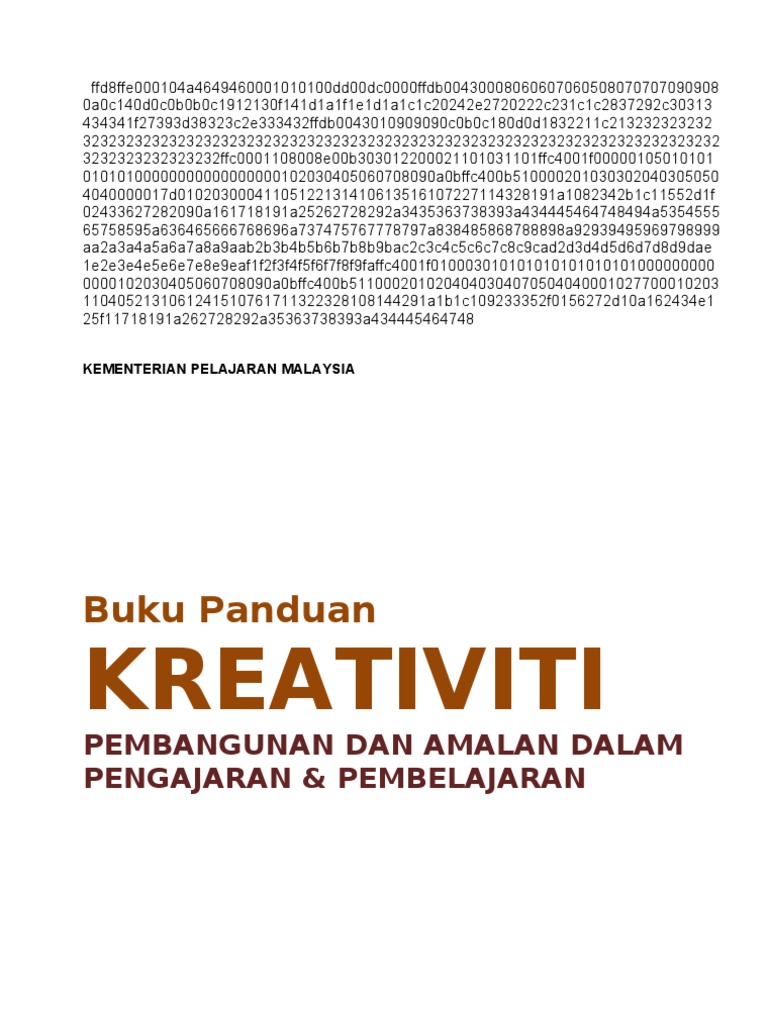 SumberBuku Panduan Kreativiti Pembangunan dan Amalan Dalam PPBPK2011 Posted by Sekolah Kebangsaan Jalan Kuantan 1 at 2326 No comments. Buku ini menggunakan kerangka model proses kreatif terarah yang diubahsuai daripada Plsek PE1997 sebagai panduan untuk guru melaksanakan PP yang kreatif dan inovatif. Find more similar flip PDFs like Panduan Pengajaran Pend Seni Visual Thn 4.